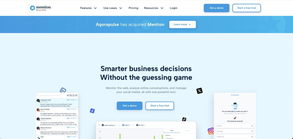 Mention uses AI-driven monitoring algorithms to scan online conversations in real time and automatically classify sentiment.